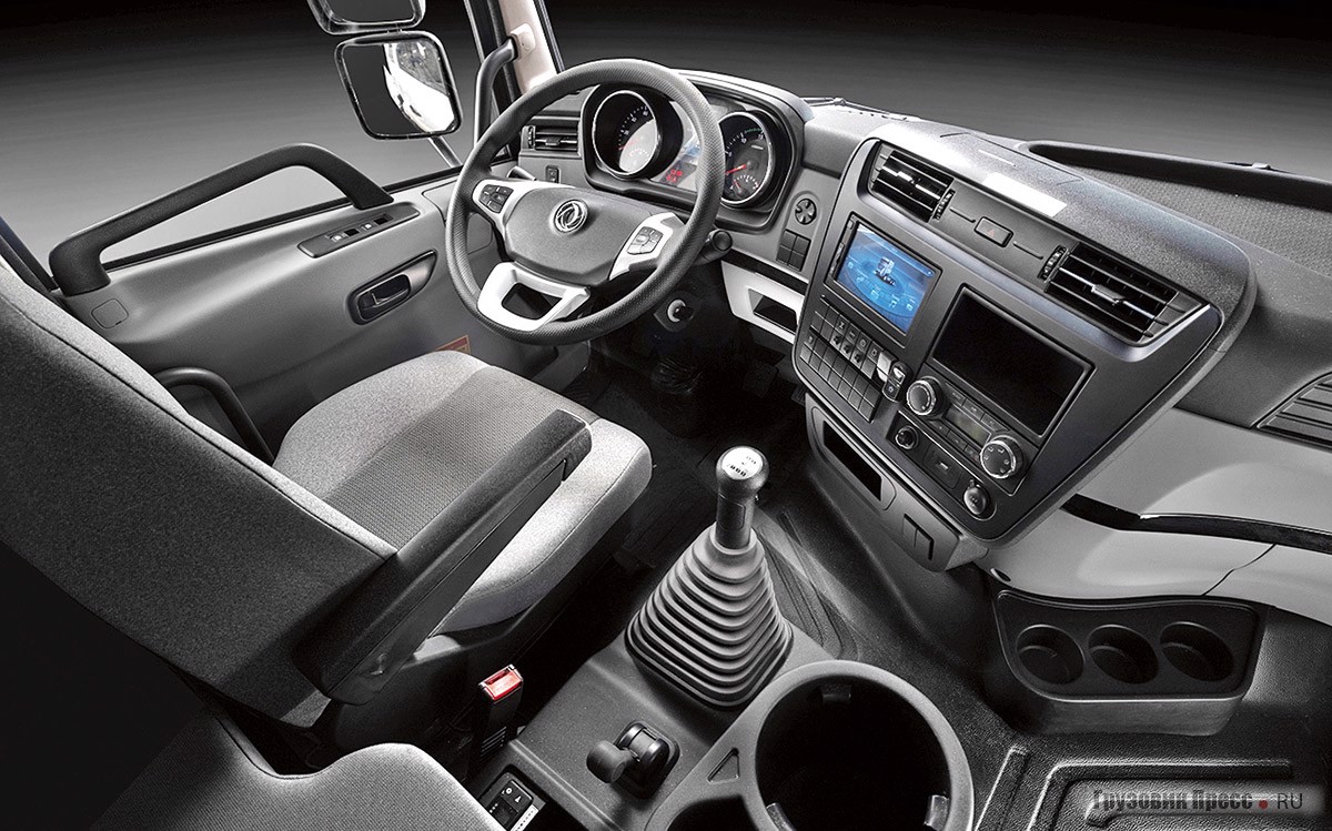Интерьер кабины автомобилей серии КС выполнен из качественных материалов с дополнительной шумоизоляцией. От вибраций кабину изолирует пневматическая подвеска, выполненная по 4-баллонной схеме. В базовой комплектации автономный воздушный отопитель, система климат-контроля, спальное место.