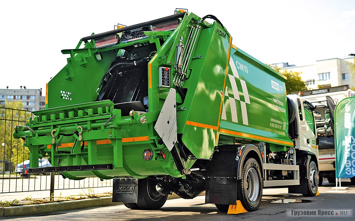 Результатом партнерства компании с ООО «Завод КДМ» стал выпуск двух компактных мусоровозов с задней загрузкой на шасси КАМАЗ Компас 12. В 2023 году на рынок вышел СМ10 номинальной грузоподъемностью 4 тонны, отличающийся повышенной маневренностью благодаря длине всего 7,7 м и предназначенный для выполнения работ в узких городских пространствах. Модель можно было увидеть на экспозиции мусоровывозящей техники, которая работала в рамках Съезда. В том же году был презентован малогабаритный СМ 8–06, обладающий повышенной маневренностью и вместе с тем лучшими эксплуатационными свойствами крупнотоннажной техники: коэффициент прессования мусоровоза составляет 1:7, полный цикл прессования – 19 секунд. Это обеспечивает эффективное уплотнение мусора и позволяет загружать в бункер емкостью 8 куб. м до 65 контейнеров объемом 1100 л каждый.