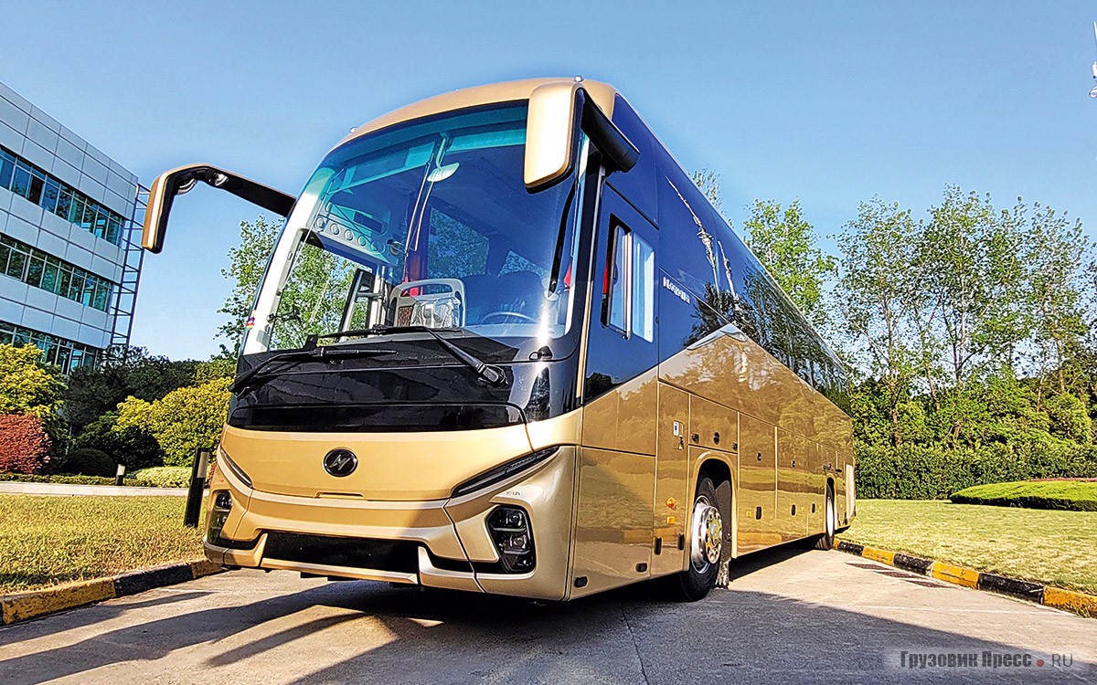 В принципе, так и должно быть: современный дизайн подчёркивает инновативность всей конструкции. Например, в поколении Higer V применяются новые агрегаты. На презентационной модели габаритной длиной более 12 м использованы проверенные мосты Dongfeng Dana. В базовом оснащении применяется LED-освещение, которое в 2,5 раза ярче галогеновых аналогов и в 1,4 раза ярче установленных на предыдущих версиях. Обращает на себя внимание точная подгонка кузовных панелей с равновеликими зазорами. Этому способствовали инвестиции в новейшее оборудование в объёме 10 млн юаней (109 млн руб.). Роботизированные станки обеспечивают точность элементов каркаса кузова. Кондуктора последнего поколения гарантируют высочайшую точность расположения на кузове при автоматической сварке.