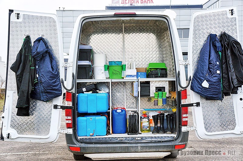 Зато «Автомобильные конструкции», взявшие для своего автомобиля класса «C» Mercedes-Benz Sprinter самого свежего поколения, пошли иным путём и отказались от ставших традиционными стеллажей по левому борту, постаравшись разместить часть оборудования по периметру кузова на съёмных креплениях, а все кресла для персонала поставить лицом по ходу движения. Затрудняемся сказать, какая схема более удобная, но тот факт, что «Автомобильные конструкции» в прошлом году стали лидерами по продажам АСМП в Белоруссии, говорит, что она имеет право на жизнь!