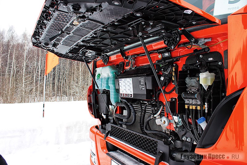 Предложенный мне автомобиль оказался укомплектован 10-литровым двигателем, мощностью 460 л.с., выполняющим экологические требования стандарта EEV. С этим обновлённым двигателем агрегатирована механическая 16-ступенчатая коробка передач ZF 16S 2220 TD.