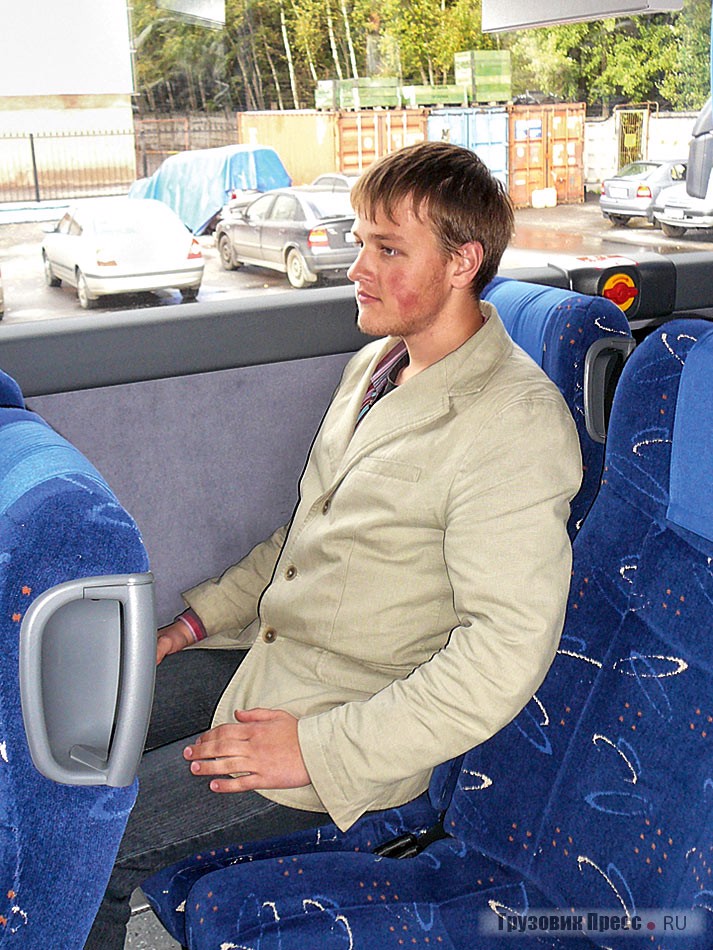По общепринятой автобусной традиции входить лучше через 1-ю дверь. Расстояние между поручнями здесь шире, да и водителю можно состроить гримасу, чтобы он, нажав на кнопку, опустил автобус на 90 мм или, наоборот, поднял на 10 мм вверх, или подал автобус вперед, ближе к платформе. Впрочем, пользоваться 2-й дверью тоже не возбраняется, тем более что ее трап не намного хуже.