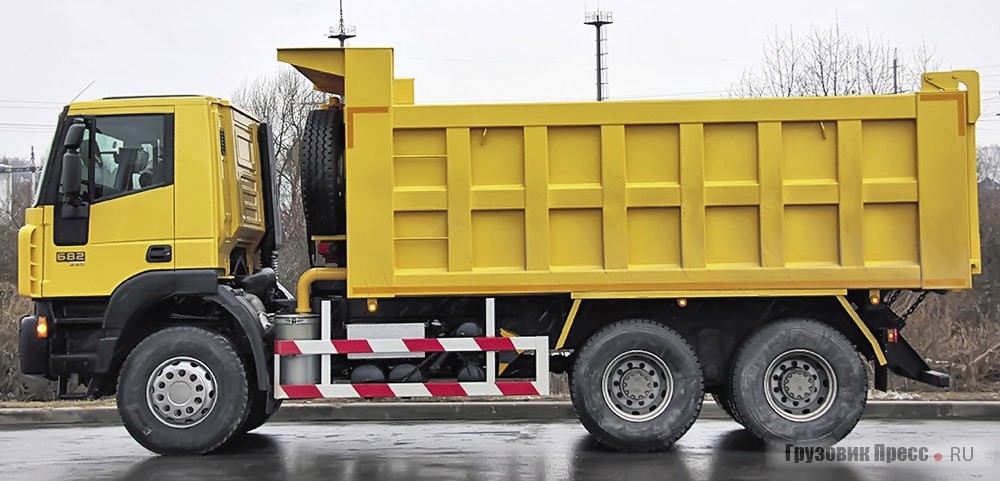 Холдинг Fiat Industrial, куда входит и марка IVECO, имеет 49 исследовательских центров, 64 завода в 190 странах, где работает 6100 сотрудников. Семейство IVECO 682 полной массой от 18 до 33,5 т в составе автопоезда до 55 т имеет два варианта колёсной формулы (4х2 или 6х4), две настройки мощности двигателя – 350 или 390 л.с., экологический класс Euro 4. Интервал технического обслуживания – 30 000 км. Сервисная сеть насчитывает около 50 предприятий. Ориентировочная цена за самосвал на российском рынке названа в районе $ 100 000.