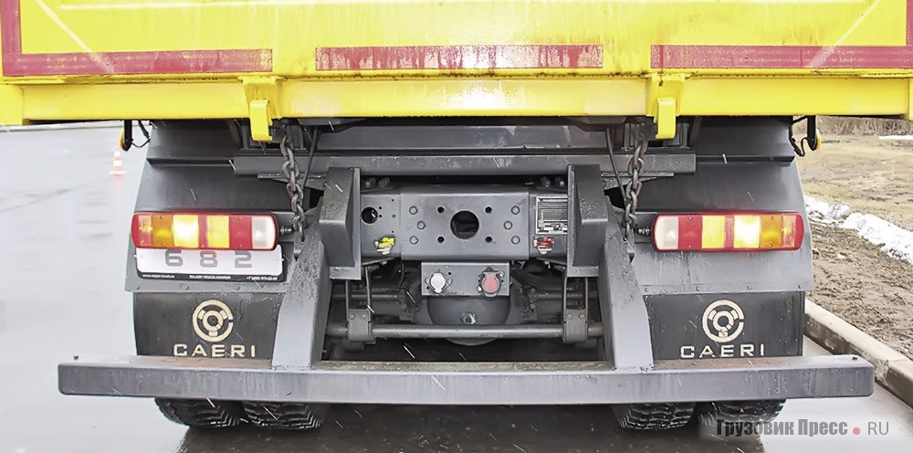 Зато мотор новинки балует отличной динамикой и эластичностью. Рулевое управление задумчивое и не особо реактивное, и, словно вторя ему после короткого интенсивного разгона, самосвал становится тугим и неспешным где-то в районе 75 км / ч – сказываются низкие передаточные отношения КП и ведущих мостов (5,73 – передаточное отношение главной пары). Если продолжать разгоняться дальше, то становится шумно и обороты двигателя непозволительно высокие. Нет, этот автомобиль не гонщик, это трудяга, но он способен простить ошибки в выборе передачи и благородно вытянуть, а не истерично дёргаться и подпрыгивать, как это делают некоторые более «прыткие» конкуренты.
