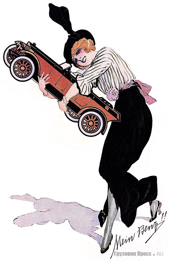 «Mein Benz!» – под этим слоганом в 1913 году появился знаменитый рекламный плакат фирмы «Бенц» в Германии и других странах. Миловидная дама с радостной улыбкой на лице обнимает автомобиль, опознанный как «бюджетная» модель Benz 8/20. Рекламный сюжет молодой женщины с «машинкой» на руках был не нов – ранее его использовали и другие фирмы – «Опель», «Панар-Левассор»... Но именно рисунок неизвестного художника для рекламы «Бенц» привлёк к себе большой интерес во всём мире. Знаменитый слоган повторялся на многих языках. «My Benz!» – в Англии, «Mia Benz!» – в Италии. Французы изменили его на трудно переводимый на русский язык «Avoir sa Benz!» – что-то вроде «Имея Бенц!». В России же к прямому переводу с немецкого добавили прилагательное – «Мой славный Бенц!».