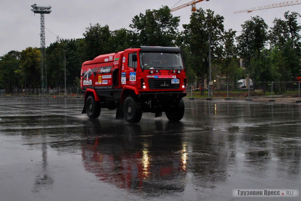 В итоге, после короткой перепалки и аргумента: «Чем мы хуже КАМАЗа?!», МАЗ-СПОРТавто получила заслуженное место на бетонном покрытии и уже утром смогла наблюдать прекрасную картину: «А выдерните нас? Пожалуйста...», от более покладистых команд. За ночь трава и грунт под ней окончательно размокли, и тяжелые неполноприводные грузовые «технички», равно как и моноприводные минивэны и LCV, благополучно застряли. Разумеется, порвав по паре тросов на машину, их в итоге вытащили на «твердую землю», но сам факт!..