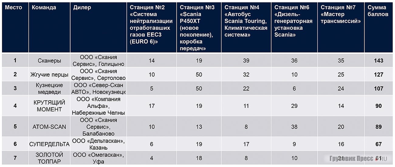 Под занавес последнего зимнего месяца в учебном центре «Академии Скания» в Голицыно состоялся финальный этап российских национальных соревнований специалистов сервиса Scania Top Team. Такие состязания компания проводит во всём мире, собирая около 8000 участников из 72-х стран. В соответствии с внутрикорпоративной философией за 25 лет программа «Scania Top Team» превратилась из национального учебного мероприятия в современную глобальную программу подготовки высококлассных специалистов.
