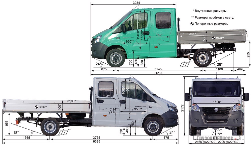 ГАЗель Next A22R22 и ГАЗель Next A22R32 с двухрядной кабиной