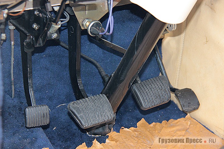 Основное внимание педальному узлу, потому что здесь четыре педали, и это при живой и здравствующей АКП. Перечисляю слева направо: стояночный тормоз, раздвоенная по обе стороны рулевой колонки тормозная педаль и акселератор. Самое главное, чтобы у водителя не возникло желание выжать несуществующее сцепление, в противном случае последствия резкого торможения без уважительных причин непредсказуемы.