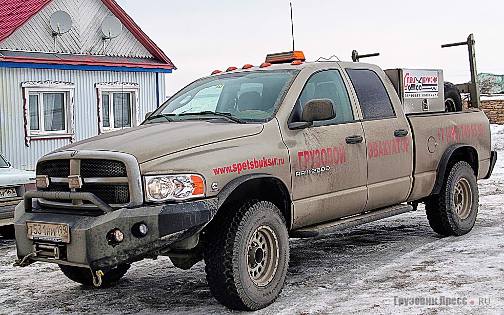 Легкий эвакуатор повышенной проходимости 4х4 на шасси Dodge Ram 2500 оборудован мощной лебёдкой и механизмом для частичной погрузки. Это позволяет производить эвакуацию легковых автомобилей и малотоннажных грузовиков, микроавтобусов из труднодоступных мест, таких как подземные паркинги, загруженные дворовые территории, центр города (въезд без пропуска) с просёлочных дорог и бездорожья.