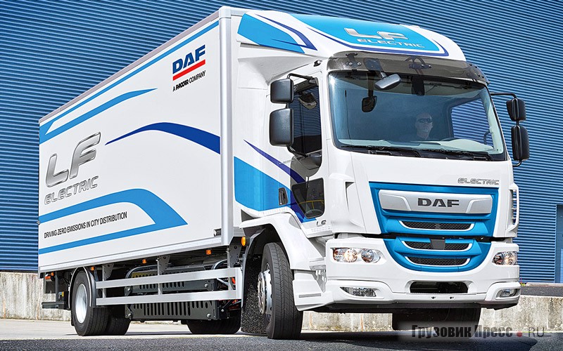 DAF LF Electric представляет собой полностью электрический грузовой автомобиль полной массой 19 т, предназначенный для выполнения внутригородских перевозок с нулевым уровнем выбросов. Данный автомобиль оснащён технологией Cummins с электродвигателем 195 кВт/ 266 л.с. (здесь нет никакой ошибки, да именно Cummins теперь строит и электрические силовые установки – вот такой задел на завтра, иначе внукам кушать нечего будет). Пиковая мощность электродвигателя – 250 кВт/ 340 л.с. Питание обеспечивается блоком аккумуляторов, ёмкостью до 222 кВт.ч, благодаря чему полностью гружёный автомобиль имеет запас хода до 220 км. Поскольку блок аккумуляторов модульной конструкции, ёмкость можно изменить в соответствии с потребностями клиентов.