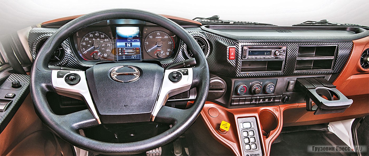 Hino в значительной степени полагается на компетенции известных производителей автомобильных узлов и компонентов. Грузовик оснащают осями и ведущими мостами Dana, тормозными системами Wabco и подвеской Hendrickson. Надо отметить отличный уровень безопасности нового грузовика, который по оснащению ближе к европейским машинам. В стандартную комплектацию машины входит фирменная система телеметрии и диагностики транспортного средства с 7-дюймовым ЖК-монитором, система контроля непроизвольного выхода из занимаемой полосы движения и светодиодное освещение.