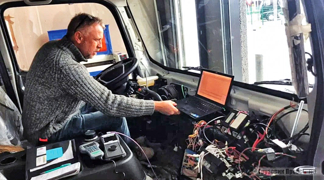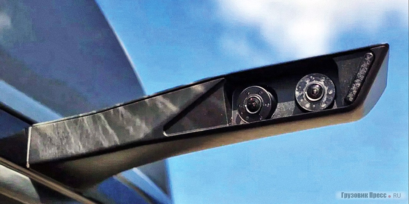 Телематический сенсорный дисплей позволяет иметь обратную связь с заказчиками и автопарком. Вместо зеркал заднего вида на автомобиле применены видеокамеры, обеспечивающие расширенный круговой обзор для водителя.