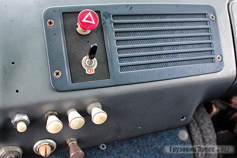 И перед тем, как прокатиться, продолжу изучение органов управления. Флажок внизу слева – управление жалюзи радиатора – норма тех лет, справа расположен центральный переключатель света, в центре консоли замок зажигания и набор электрических выключателей, чуть выше – управление вентиляцией и отоплением. В принципе всё понятно и очень похоже на... «407-й» «Москвич». Но как всё аккуратно исполнено и ладно подогнано!