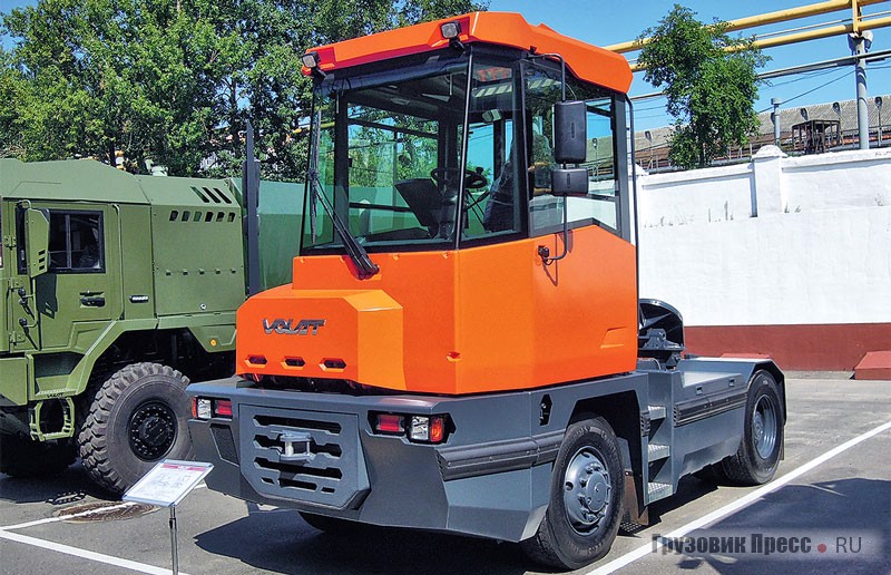 Новый терминальный тягач оснащён более прочной рамой и надёжными ведущими мостами, способными выдерживать большую нагрузку на ССУ. В конструкции обязательно присутствует автоматическая трансмиссия, а также предусмотрена возможность изменения высоты седла для работы с различными полуприцепами. У машины одноместная кабина с большой площадью остекления, а для достижения меньшего радиуса поворота колёсная база тягача максимально укорачена.