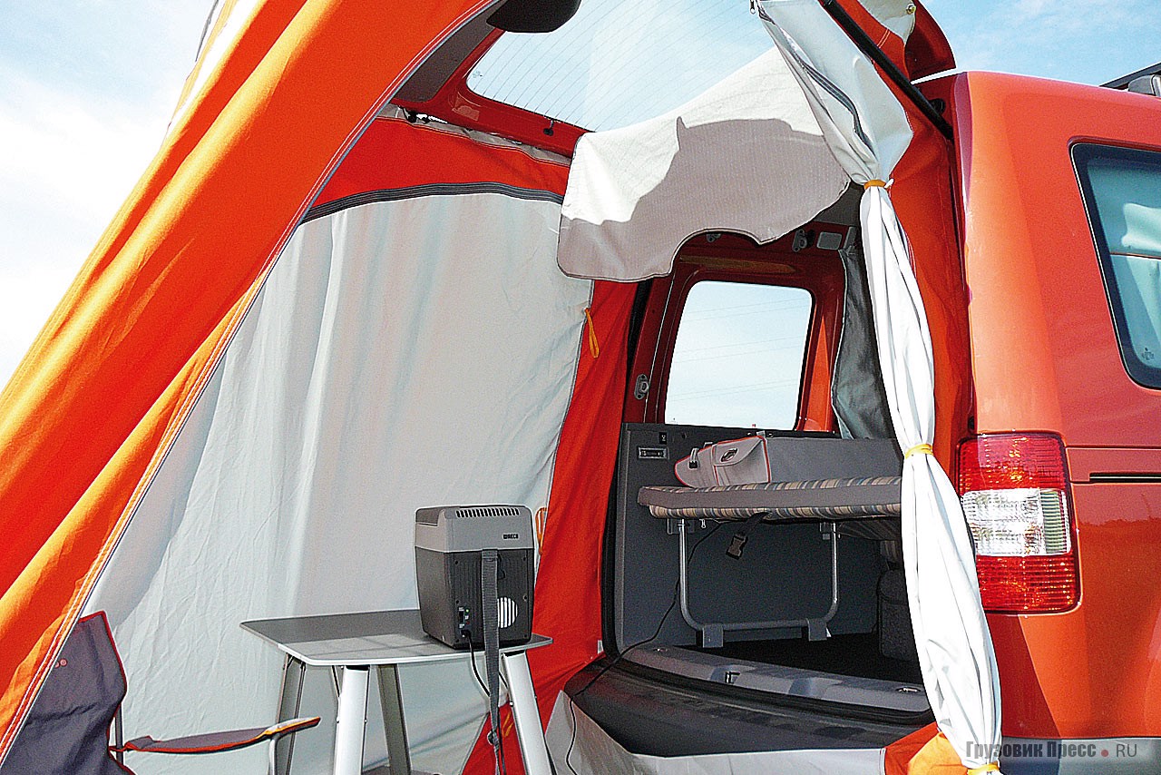 Ночь я провел в Caddy Tramper. Возникающая было прохлада легко устранялась после включения подогревателя, при работе которого, к слову сказать, появлялся резкий своеобразный запах. Плотные шторы не пропускали свет фонарей. А шумоизоляция такая, что утром из пяти стоявших рядом машин четыре отъехали незаметно для меня. В общем, выспался я не хуже чем на домашнем диване.