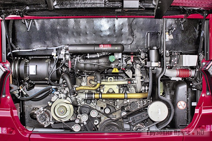 На ходу такой же антипод. На рабочем месте хоть и более простом, утратившем щеголеватые цветные дисплеи, но не растерявшем былой уют, «вырос» небольшой рычаг механической трансмиссии. Шесть ступеней вполне достаточно для интенсивного разгона и чувства уверенности в плотном потоке. И в городе, и на автобане, и даже на участке горной дороги. Вот это да! И ведь сама машина потяжелее будет своей сестрички на пару тонн. Ещё не перестаю удивляться, как удалось добиться столь чёткой работы привода КП. Передачи переключаются на четвёрку с плюсом, как на неплохой легковушке! А теперь представьте себе длину привода, ведь силовой агрегат расположен в заднем свесе! Как я потом выяснил у создателей, там специфическая конструкция механизма. С рабочего места до пола использован тросовый привод, а далее за дело берётся классическая кулиса, но со множеством промежуточных опор оригинальной конструкции. Но результат великолепен!