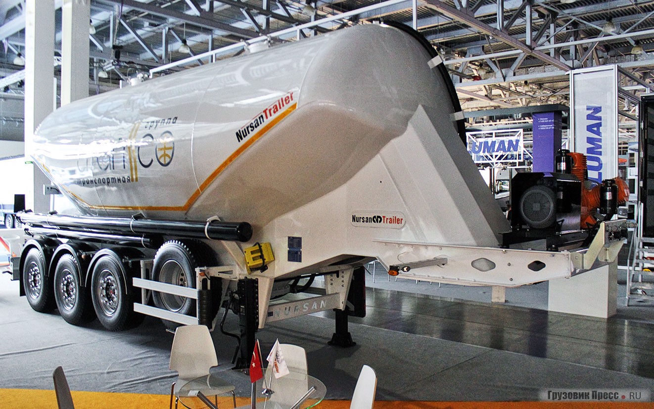 В числе цистерн была представлена и продукция турецкого завода Nursan Trailer. В производственную линейку входят 6 полуприцепов вместимостью от 28 до 50 м3.