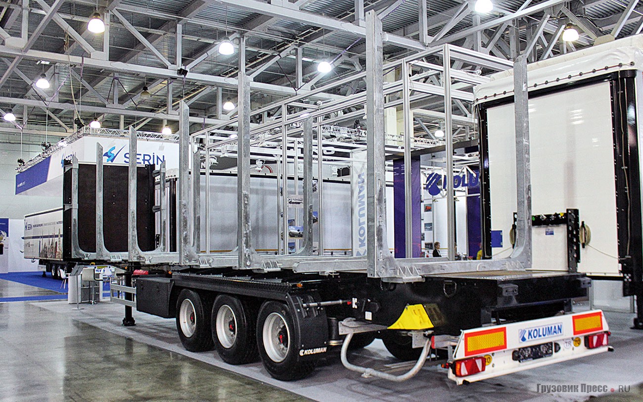 Стоит упомянуть и ещё одну новинку в этом ряду. Турецкий полуприцеп-сортиментовоз Koluman S3-27 было достаточно забавно видеть на стенде «Колуман Рус», поскольку турецкие производители ранее не представляли технику для лесозаготовок.