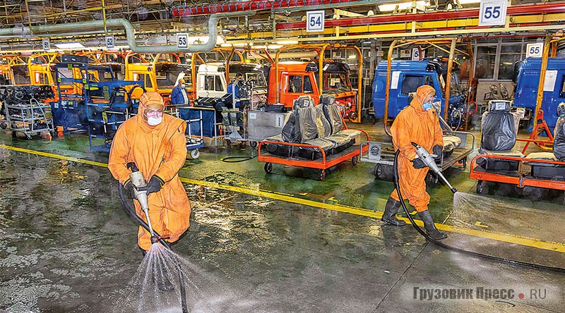 Персонал, отвечающий за административные функции, переведён на удалённый режим работы с ответственностью по обеспечению бесперебойных бизнес-процессов. Сотрудники и посетители грузовых СТО обеспечены дополнительными мерами защиты: ежедневным контролем за температурой тела, дезинфицирующими средствами (антисептиками и санитайзерами) и медицинскими масками. В помещениях усилен режим уборки. На станциях техобслуживания многих брендов уделяется повышенное внимание санитарной обработке грузовиков. Так что жить все хотят.