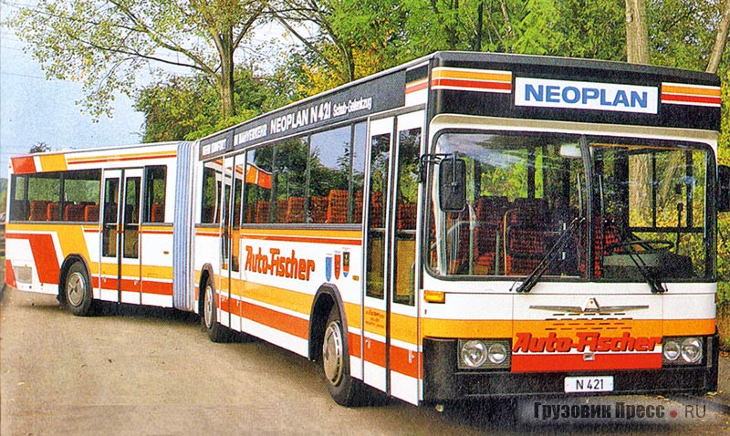 После того, как концерн Gottlob Auwärter GmbH принял участие в разработке стандартного автобуса II поколения VÖV, было принято решение о создании на его базе сочленённой машины. В 1980-м году совместно с мастерскими «Фалькенрид» был разработан сочленённый прототип Neoplan N 421 SÜG длиной 18 м. Автобус комплектовался двигателем Mercedes OM 407 hA мощностью 280 л.с., что позволяло ему развивать максимальную скорость 75 км/ч. Общая вместимость новой модели автобуса составила 160 пассажиров, в том числе 34 сидящих, причем в салоне было предусмотрено одно место для детской коляски или инвалидного кресла. Автобус был отправлен заказчику, компании Fischer из города Лерте в Нижней Саксонии, в 1981 году.