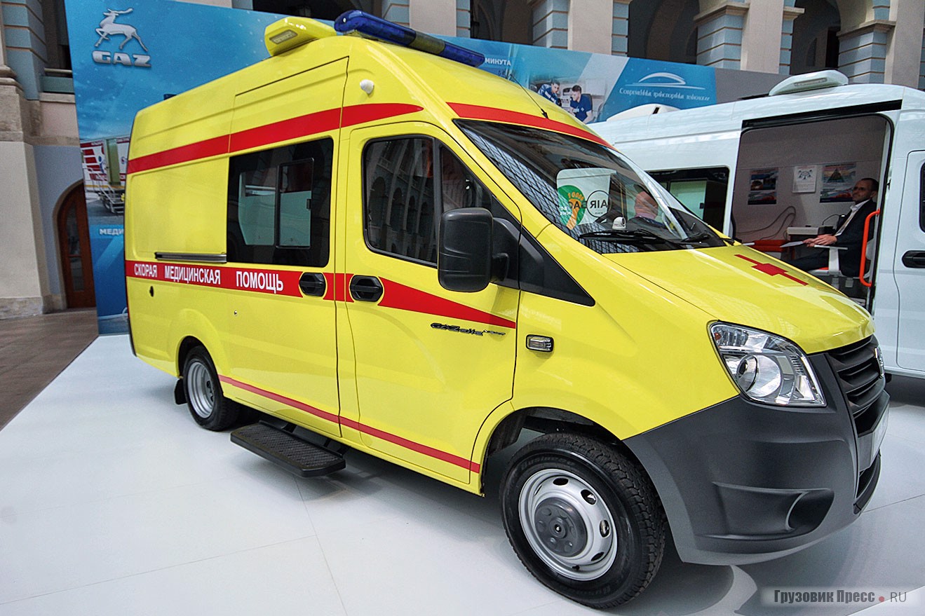 Ещё одной очень выразительной новинкой стал автомобиль скорой медицинской помощи на базе автобуса «ГАЗель NEXT» (А64R45). Главная его особенность в том, что исполнен он на базе полноценного каркасного автобуса Citiline, а не на основе цельднометаллического фургона. Получилась не только удобная компоновка для транспортировки больных на дальние расстояния, но и очень эстетичный вид. Сразу бросился в глаза увеличенный размер салона этой медицинской машины. Такое пространство позволяет организовать в машине трансформируемое рабочее пространство с комфортабельными поворотными креслами для медицинских работников, обеспечить удобство работы с пациентом и безопасное размещение персонала во время движения.