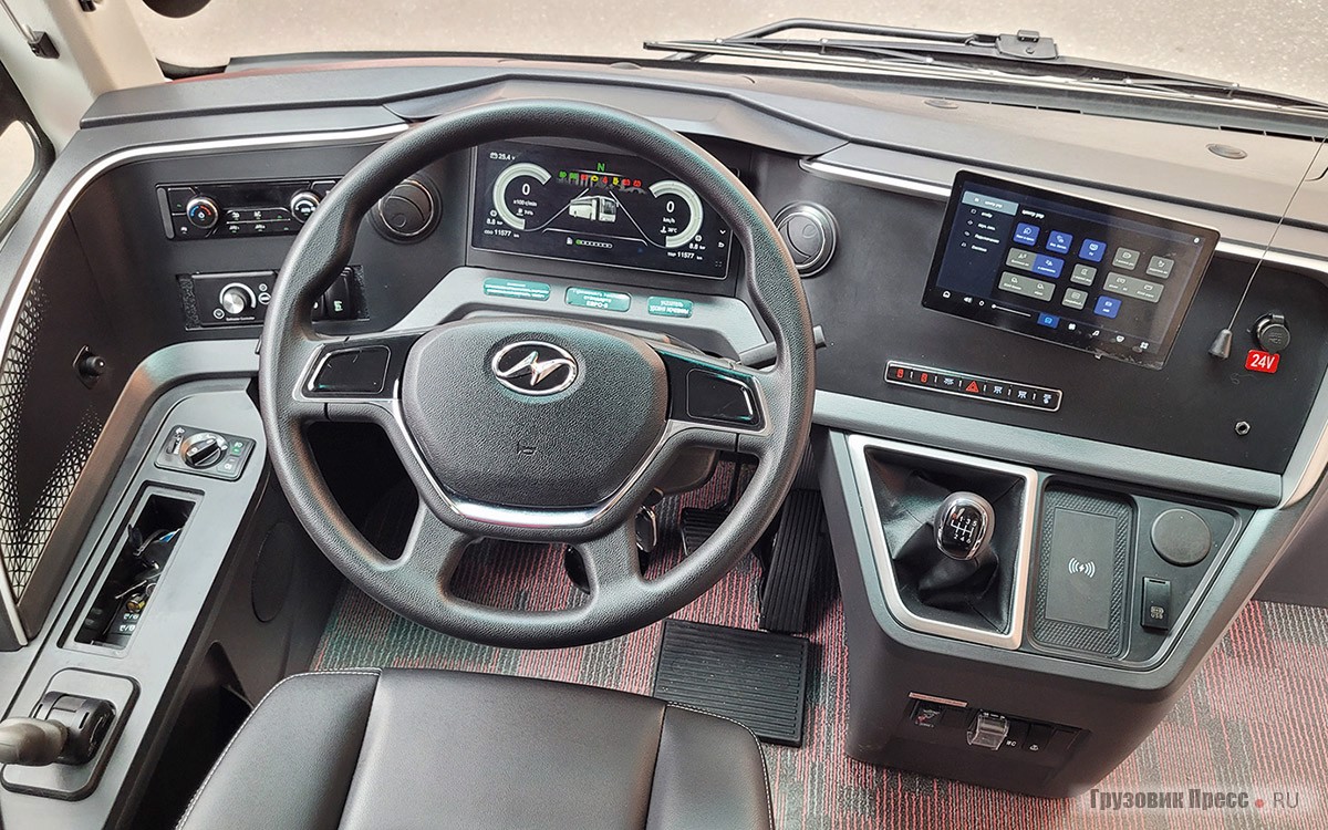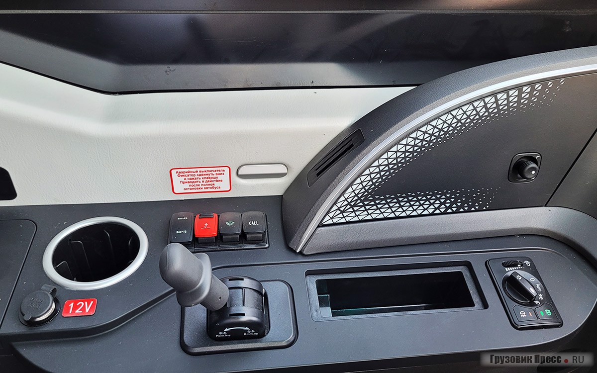 Современно и в соответствии с требованиями безопасности и нормативами эргономики выполнено рабочее место водителя. Здесь всё, как на витрине супермаркета, в удобных зонах и досягаемости вытянутой руки. Подрессоренное кресло выполнено с рельефной ягодичной и поясничной поддержкой и откидными подлокотниками с левой и правой стороны. Транспортным операторам лайнер доступен через официального эксклюзивного дистрибьютора Higer Bus в России – группу компаний «Русбизнесавто». Новшеством стал безступенчатый регулятор обдува ветрового стекла, которое теперь поставляется со встроенными нитями электрообогрева по всей поверхности. Добрых слов заслуживает организация рабочей зоны сидящего за рулём. Есть даже отдельный пятачок для зарядки мобильного телефона. Интерфейс планшетов на русском языке очень понятный. Всё это перевозчики обязательно оценят.