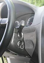 Рулевое колесо имеет регулировку по углу наклона, но, на наш взгляд, диапазон у него слишком узкий. Новая 4-спицевая "баранка", заимствованная у VW Transporter, приятна на ощупь и удобна в обхвате. На центральной консоли расположились три кругляша рукояток системы вентиляции и отопления салона. Ниже заглушка под установку аудиосистемы. Под ней пепельница с прикуривателем и ниша для всяких мелочей. А что это за кнопка перед рычагом КП? Да это же отключение противобуксовочной системы ASR. Запомним...