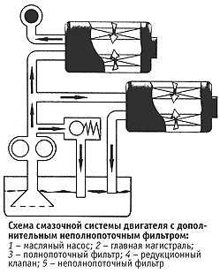 Дополнительный фильтр сверхтонкой очистки (ФСО) масла имеет очень малый размер пор фильтрующего материала. Через него проходит до 10% объёма масла, подаваемого насосом в главную магистраль. Схема включения дополнительного фильтра показана на рисунке.