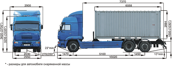 В нашем случае установленный 20-футовый контейнер применялся в качестве балласта (машина в таком виде пришла на испытания с завода). Однако само шасси может быть использовано для установки любой надстройки (в том числе и контейнеровоза). Наиболее логичным, как мне видится, было бы установить на этот автомобиль фургон (изотермический или тентованный), так как в этом случае эксплуатация в тандеме с прицепом предполагает максимально эффективное использование машины: сцепка позволяет передвигаться по городу более свободно и маневренно в сравнении с полуприцепом. Грузоподъемность же остается на привычном для межгорода уровне. В изотермическом исполнении: 10 т – в тягач, 10 – в прицеп. В случае с тентом – около 15 и 12 т соответственно. Камские грузовики уже давно комплектуют европейским тягово-сцепным устройством, поэтому проблем с подбором прицепа не возникнет. Однако заводчане, видимо, думают по-другому. Вариант использования данного шасси в качестве седельного тягача поставлен в модельном ряду этого семейства на первое место.