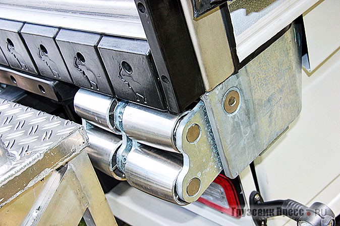 При подъезде к рампе и прочих манёврах, особенно когда спешишь, иногда случается «жёсткая стыковка». Чтобы энергия удара не причинила вреда ни полуприцепу, ни рампе, компания Schmitz Cargobull оптимизировала пружинящие роликовые отбойники. Пружинящие роликовые отбойники включают массивные ролики из нержавеющей стали, за которыми установлены амортизирующие элементы. Они позволяют перенаправить силу удара с кузова на шасси полуприцепа, способное выдерживать большие нагрузки. Новая разработка с четырьмя эллиптическими роликами ещё более неприхотлива в техническом обслуживании и выполняет свои функции даже тогда, когда полуприцеп подъезжает к рампе не под прямым углом. Кроме того, роликовая конструкция отбойников обеспечивает их вертикальную подвижность, когда при погрузке и разгрузке тяжёлыми погрузчиками с рампы высота пола колеблется.
