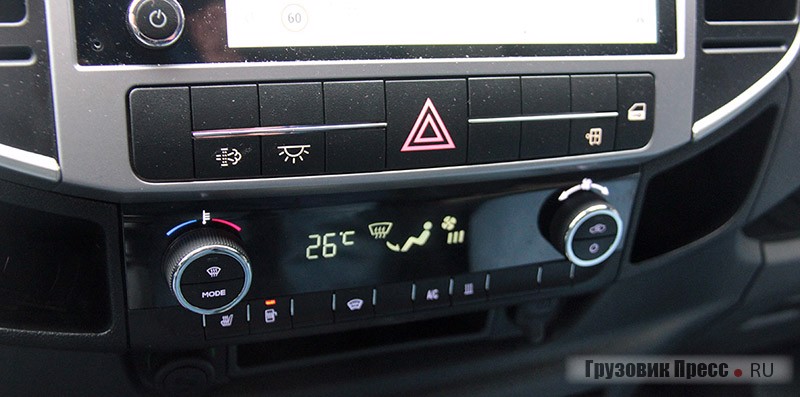 В кабине меня встретило шикарное подпружиненное водительское сиденье с подлокотниками и бессметным количеством регулировок, их 18, включая вылет подушки, поясничный подпор и коррекцию жёсткости с учётом веса водителя. Рулевая колонка регулируется только по углу наклона, но создаётся впечатление, что большего и не требуется, благодаря лояльности кресла устроиться можно очень удобно.